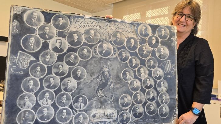 Mercè Burgués Gratacós, neta de l’enginyer elèctric Francesc Gratacós Martí, troba a casa del seu avi l’orla universitària més antiga que es conserva de l’ESEIAAT de la UPC